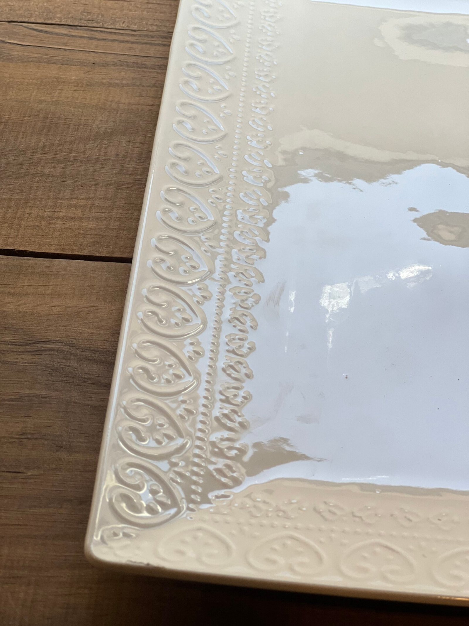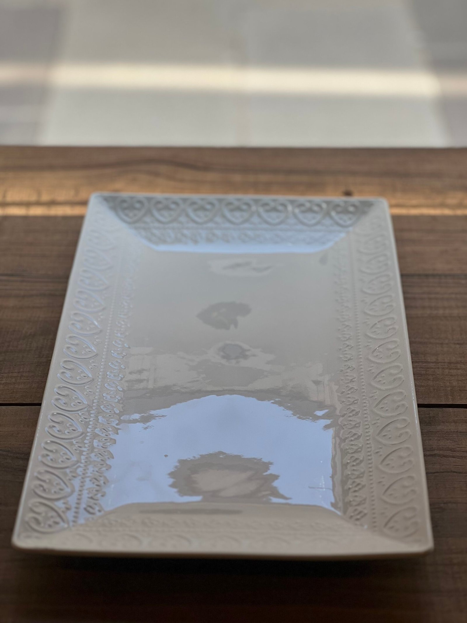 Bandeja de porcelana blanca con bordes labrados en corazón