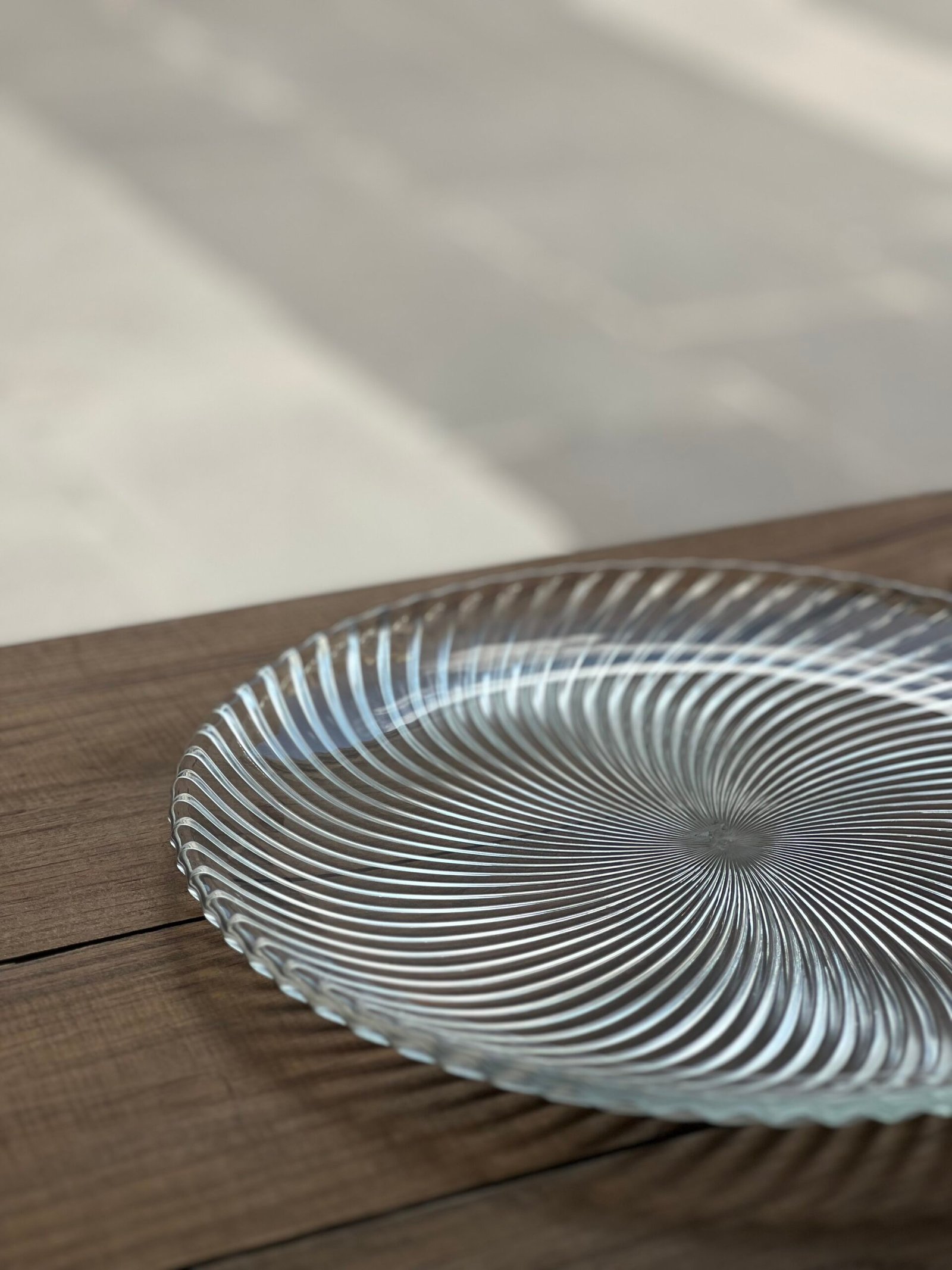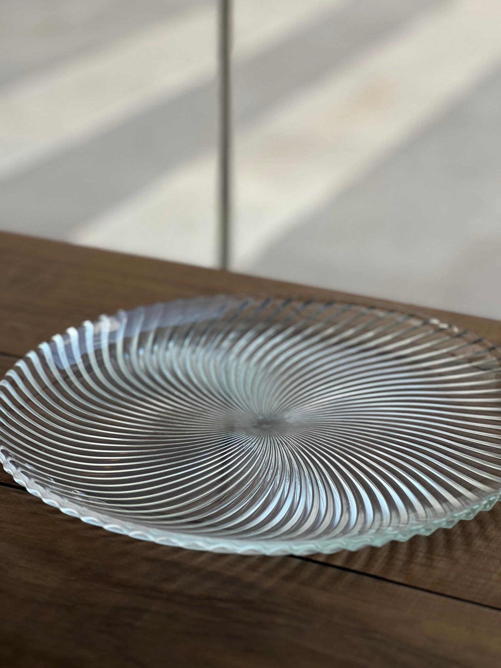 Elegí elegancia y estilo con la bandeja de vidrio con diseño espiral. Su acabado transparente y patrón en relieve aportan un toque moderno y sofisticado a cualquier mesa o espacio.