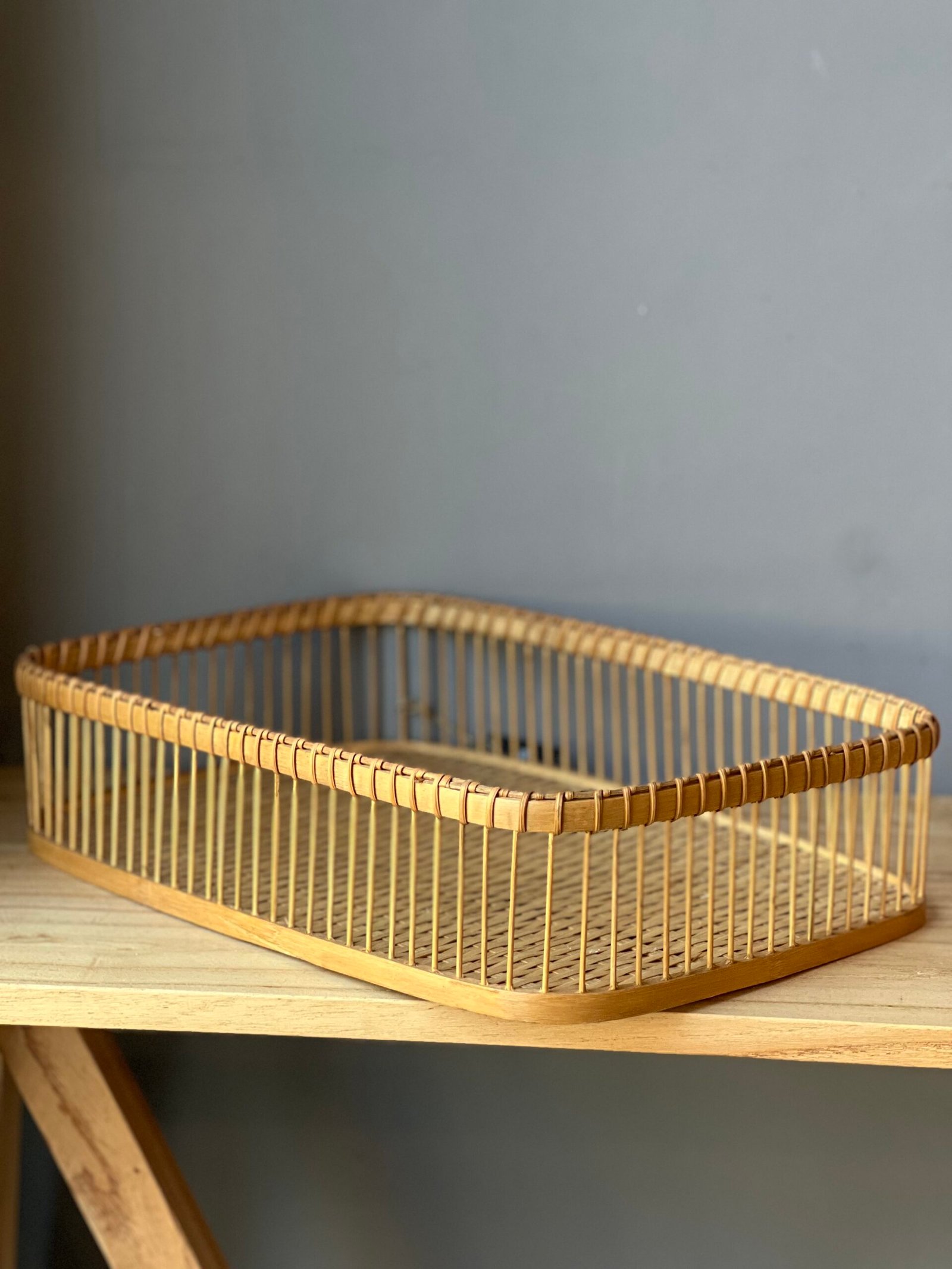 Bandeja decorativa realizada en bambú, ideal para sumar un toque natural y cálido a tu hogar. Perfecta para usar en la cocina, living, baño o como pieza decorativa en cualquier ambiente. Su diseño resistente y funcional la convierte en un accesorio versátil para el uso diario.