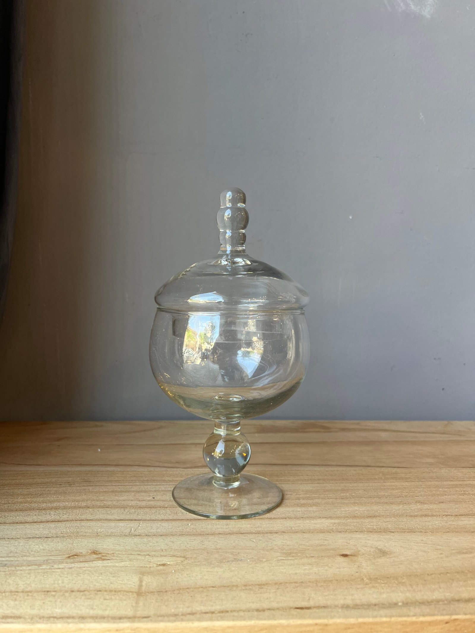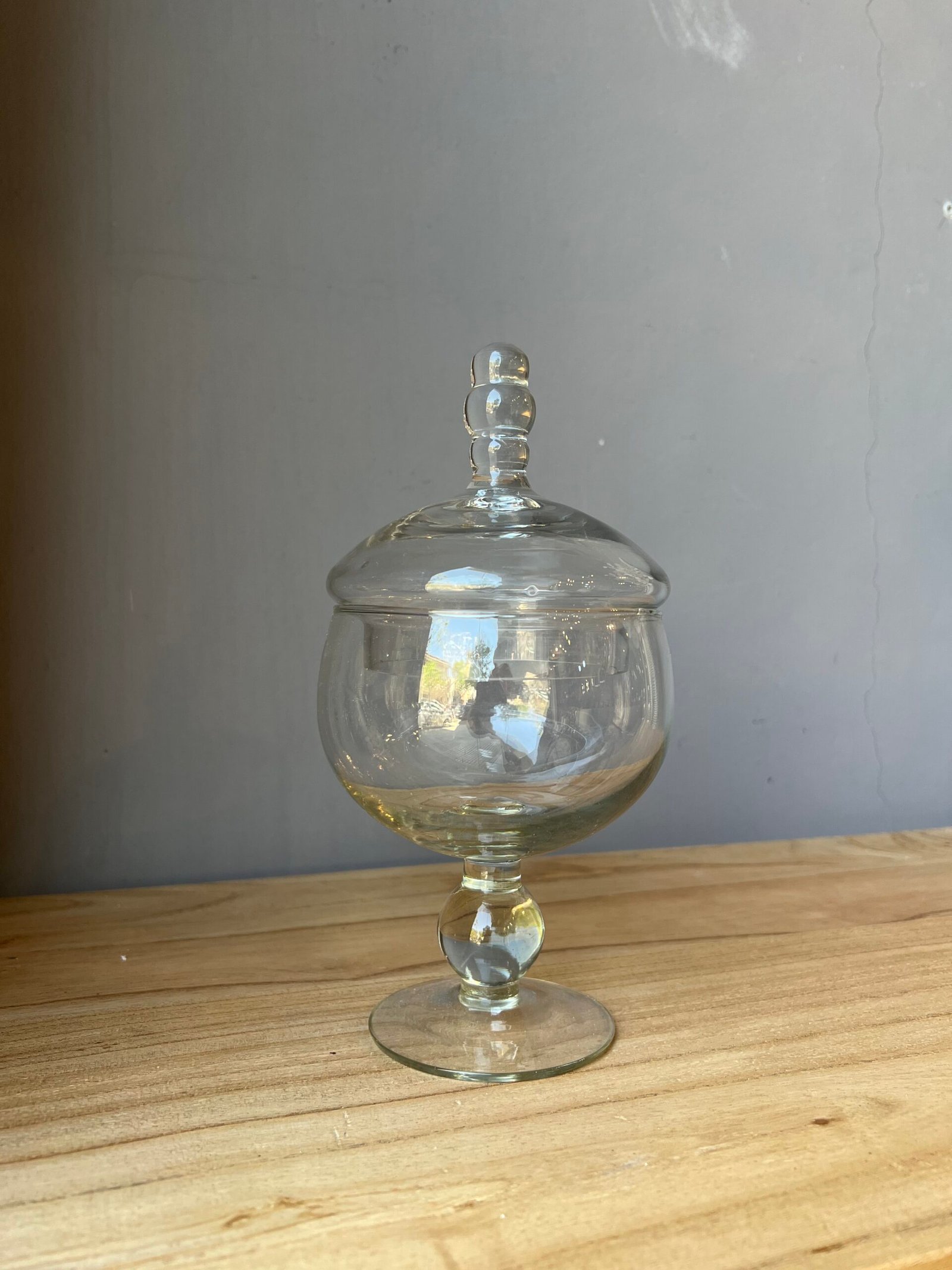 Caramelera de vidrio transparente con un diseño elegante y minimalista, ideal para decorar, organizar y exhibir dulces o pequeños objetos. Su estilo limpio permite apreciar perfectamente el contenido, convirtiéndola en una pieza práctica y decorativa.