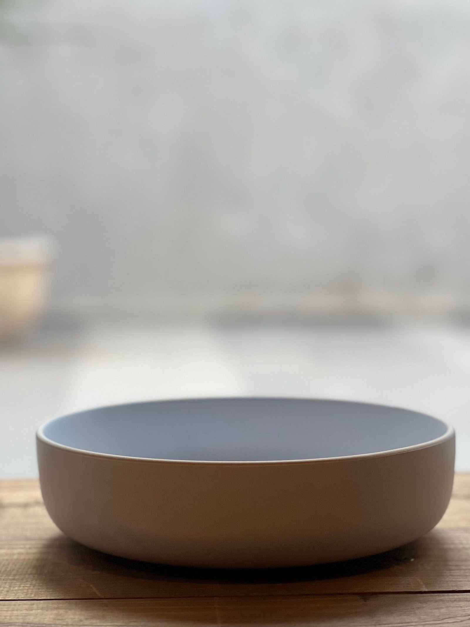 Elegante ensaladera de vidrio o cerámica (según material) en color gris, con diseño moderno y sofisticado. Ideal para servir ensaladas, frutas o preparaciones frías con estilo en la mesa.