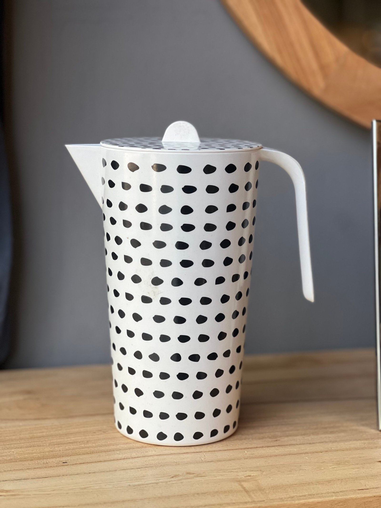 La jarra MIK de la línea Dots combina estilo y practicidad en un diseño moderno. Fabricada en fibra de bamboo, es una opción ecológica, liviana y resistente. Con una capacidad de 1.7 litros, altura de 23 cm y diámetro de 12 cm, es ideal para servir jugos, aguas saborizadas y refrescos.