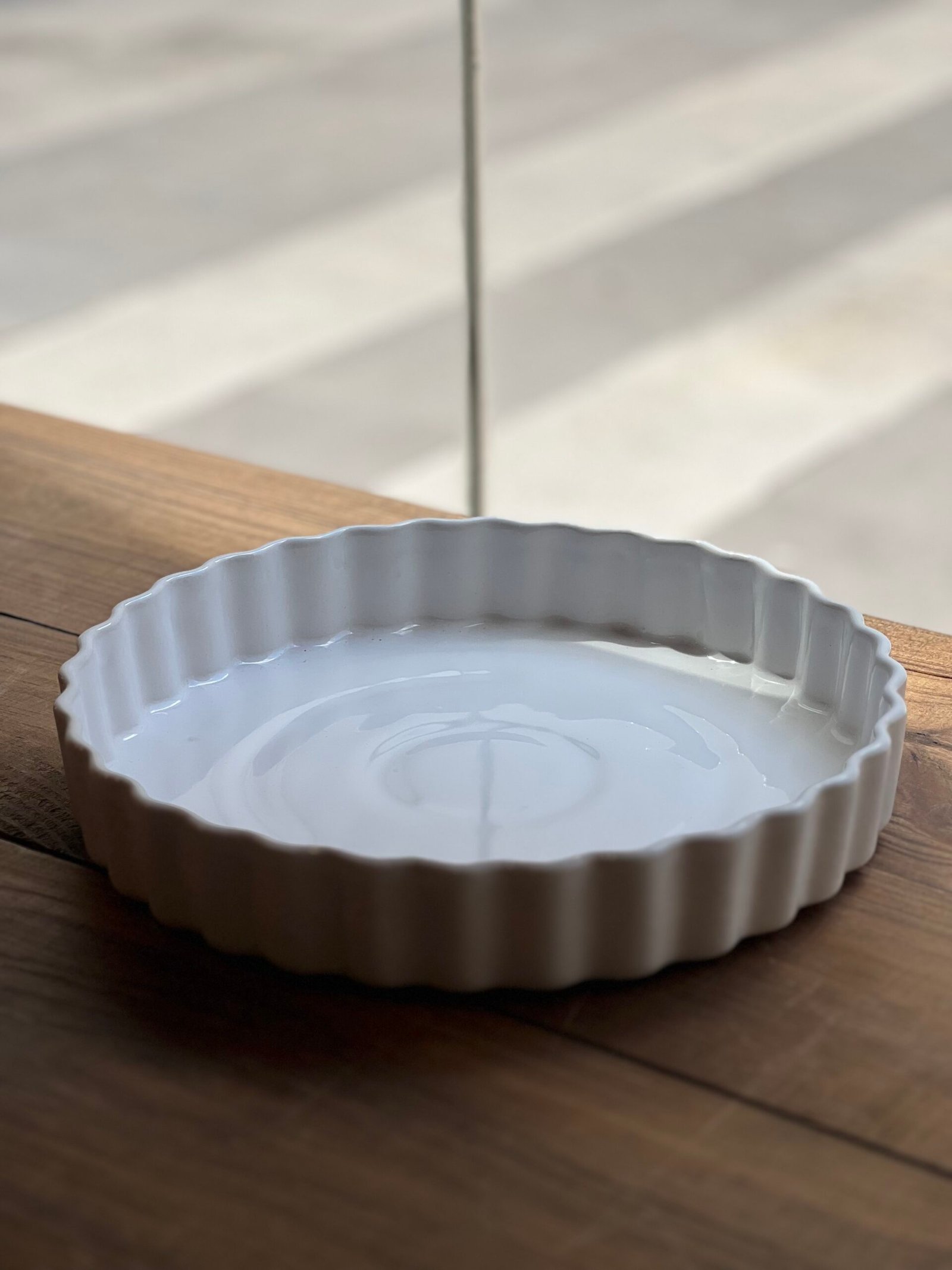 Elegante tartera de cerámica de 28 cm de diámetro x 4,5 cm de altura, ideal para preparar y servir tus platos favoritos, desde tartas dulces hasta recetas saladas. Fabricada en cerámica de alta resistencia, es apta para horno y garantiza durabilidad, seguridad y cocción uniforme.